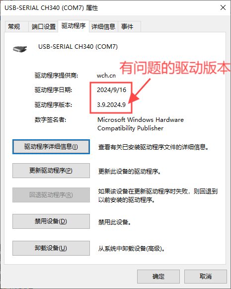这是由于近期windows自动更新了USB转串口驱动导致的,已知3.9版本的驱动会导致该问题。